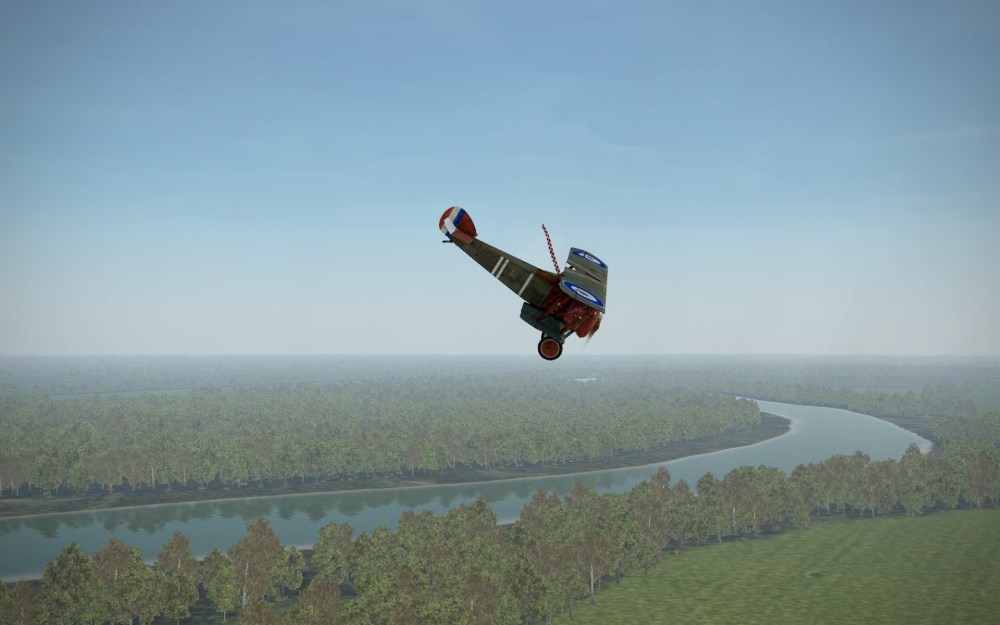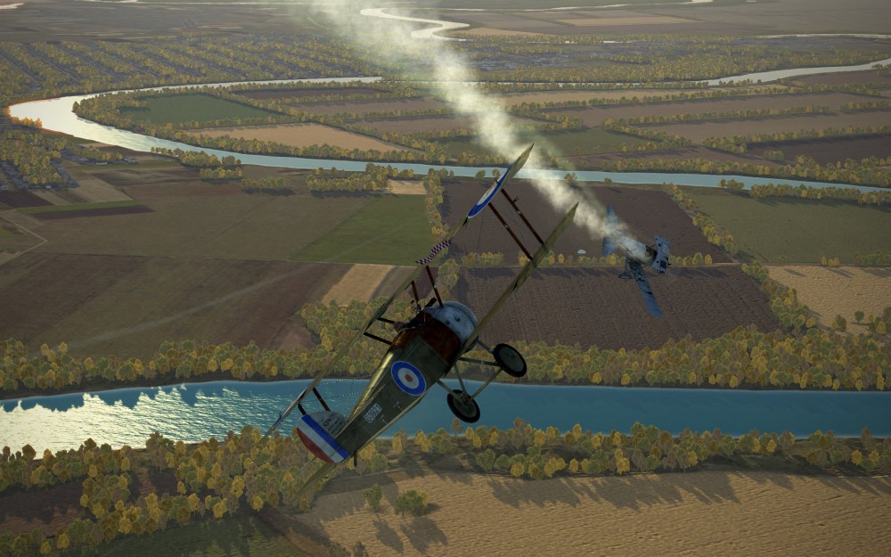 I find the aircraft is quite sensitive to speed changes and very quickly pitches nose high at most speeds. The engine torque will fight you in left hand turns but not as badly as the similarly powered Fokker Dr. I. That said, do enough wrong and the Camel will end up in a flat spin that is unrecoverable in most circumstances. I’ve certainly not been able to get out of a couple since I started flying it. On the flipside, those used to the Rise of Flight Camel will find this a bit easier and ever so slightly less temperamental.