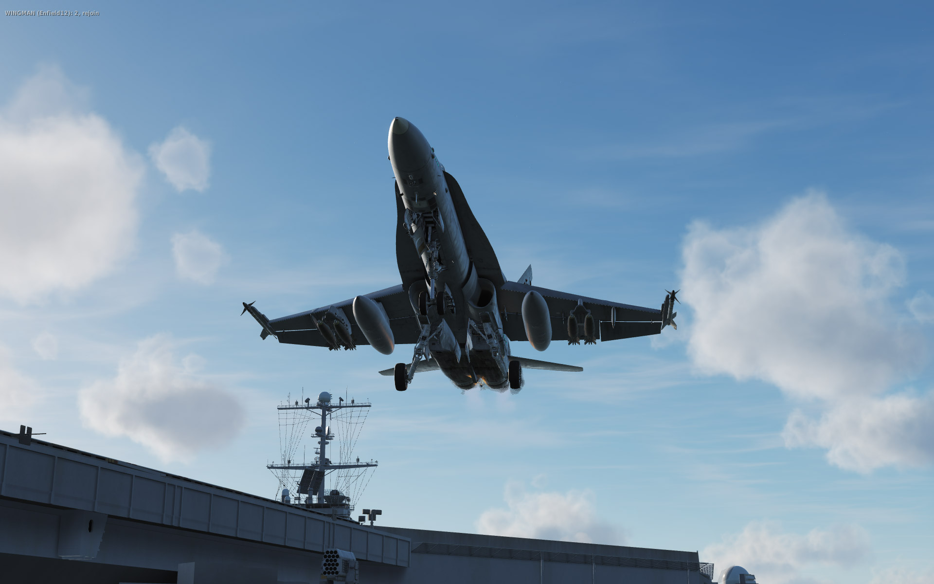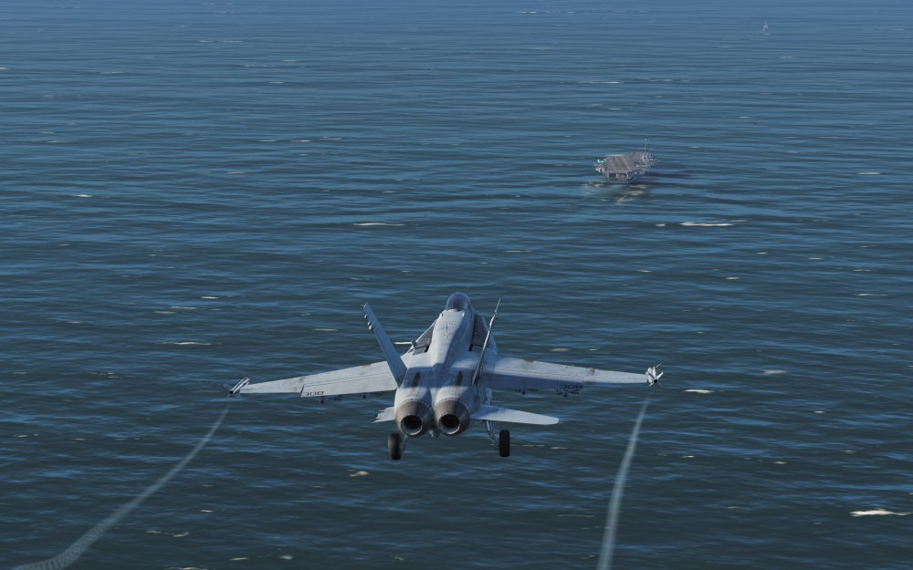 As much as I’d like to pat myself on the back on a mission well done this time, I do have to report that I took me 6 tries to put that Hornet back on the deck and actually catch a wire. I’ve been practicing but not nearly enough and so it looks like I need to go back to Hornet carrier qualifications and re-learn some of that so I’m following the numbers and flying the approach that I’m supposed to fly.