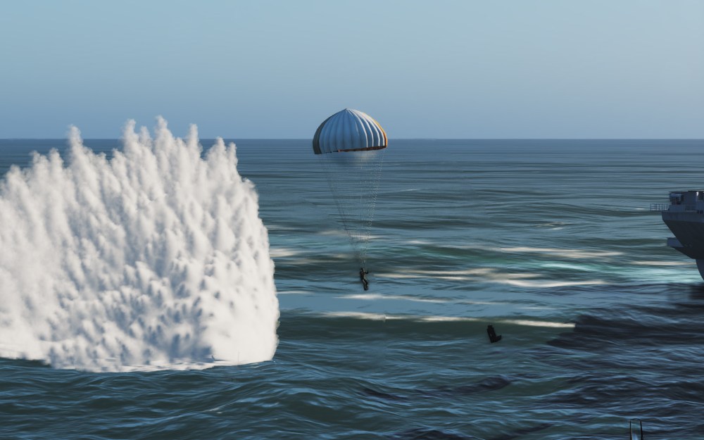 F-14s provide the primary combat air support while another flight of F/A-18Cs provide SEAD support with HARM missiles (these aircraft are using the old F/A-18C model and can be fitted with HARM missiles – one assumes they will be upgraded later on). You can see all of this going on in the background with the F-14s contrails snaking through the sky and AWACs calling out bandits at 30,000 feet.