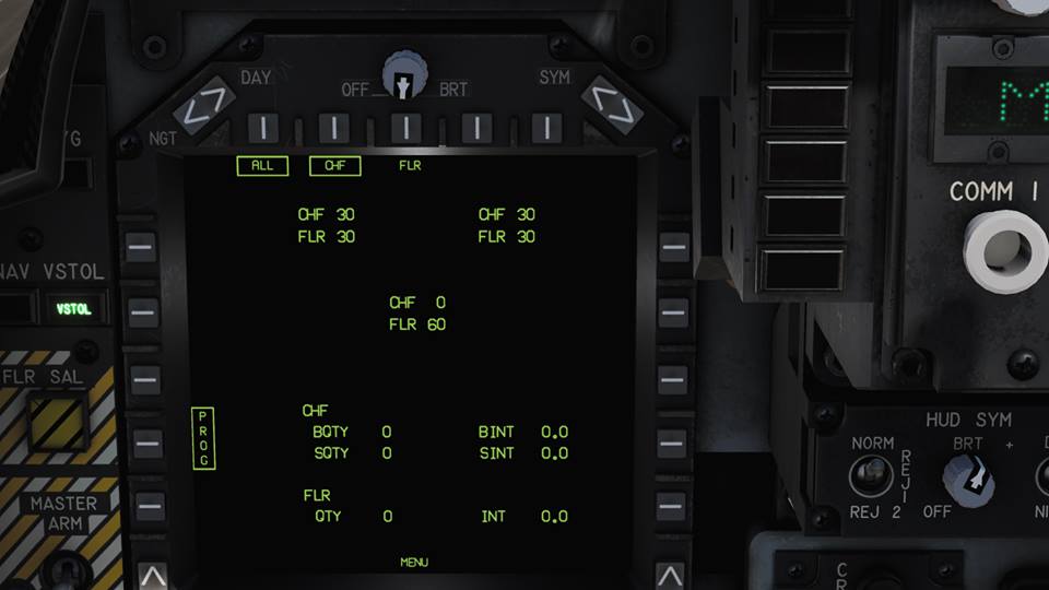 The AV-8B, similar to the F/A-18C Hornet, can be programmed to release chaff and flare bundles in a program set up on one of the jets MFDs. Up until now, this feature was not programmed in to the module. That is about to change.
