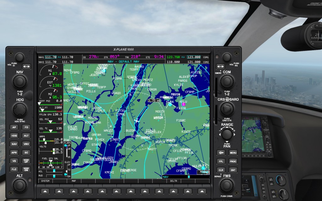 What appears to be a near staple of general aviation aircraft these days is the twin panel Garmin G1000 series display. These digital flight instruments seem to have taken over the scene over the last decade and there are tutorials out there on YouTube on how to use the real ones as well as the X-Plane equivalent (labeled X-Plane 1000).