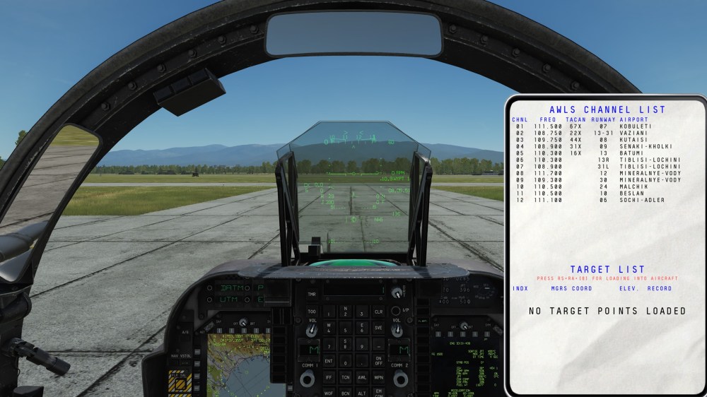 One of the first features we’ve seen is the JDMA HUD alignment test. This image shows a test target and the JDAM system aligning itself with a status indicator appearing beneath a circle on the HUD. This is an interesting arrangement that I look forward to learning more about.