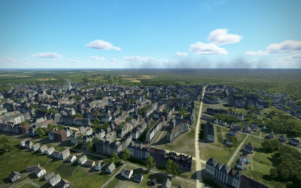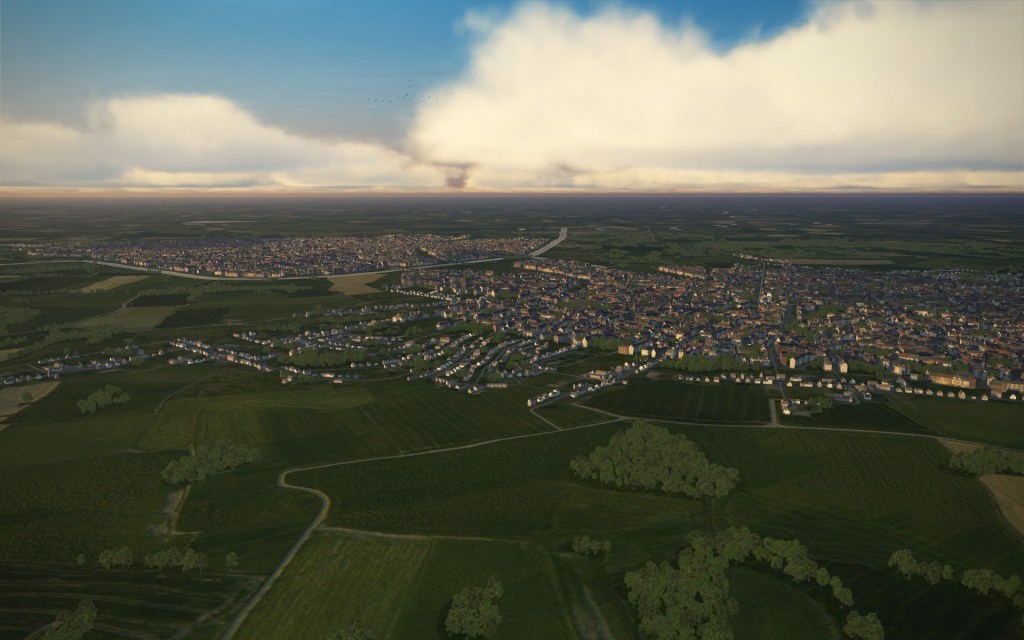 Flying to Arras and surrounding area was also impressive. Textures on the map are equal (and nearly the same) as those for Rhineland though the area has few standout terrain features. The fields of France here at relatively flat and that’s represented by the map as well.