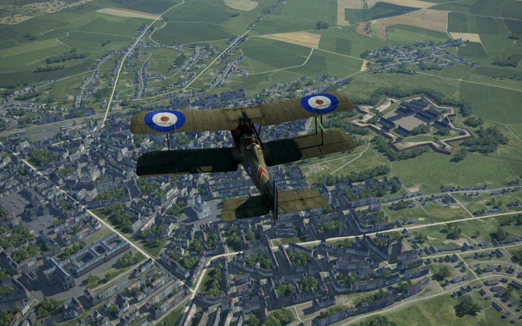 The technology used to create western European towns and cities for the Rhineland map was also used for Arras. The look is convincing and it provides strong visual queues and references for visual flying and navigation – absolutely essential for a WWI map. The map has its own look about it, despite drawing heavily on assets used for Rhineland and that becomes even more evident as I flew over Arras itself. Citadelle d’Arras is a standout landmark and it looks superb!