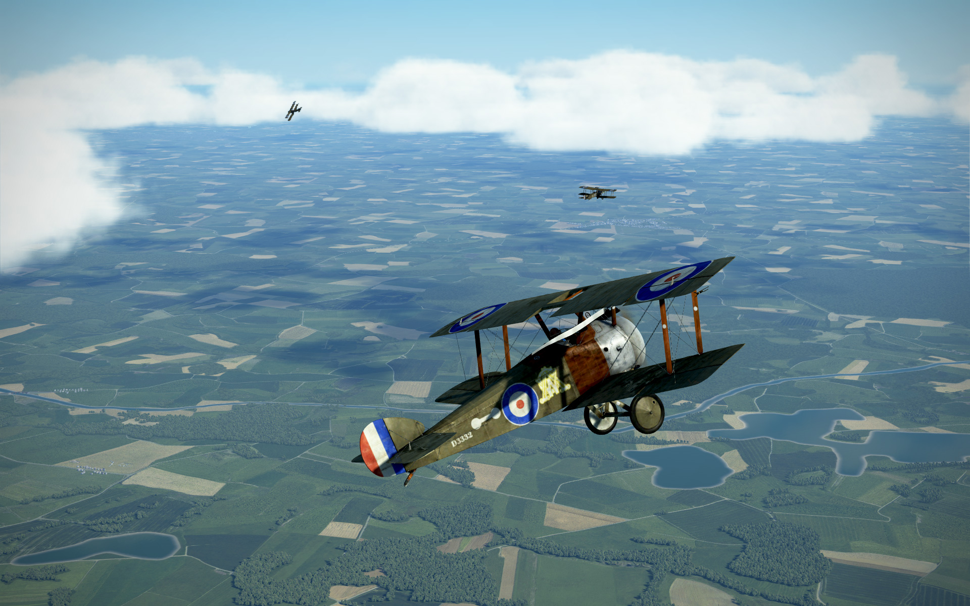 A Halberstadt CL.II had spotted us and was moving to engage. Jon’s aircraft took heavy damage with his gunner returning fire on the target. With the CL.II breaking away I took the initiative and raked the enemy aircraft with my 7.7mm Vickers machine gun.