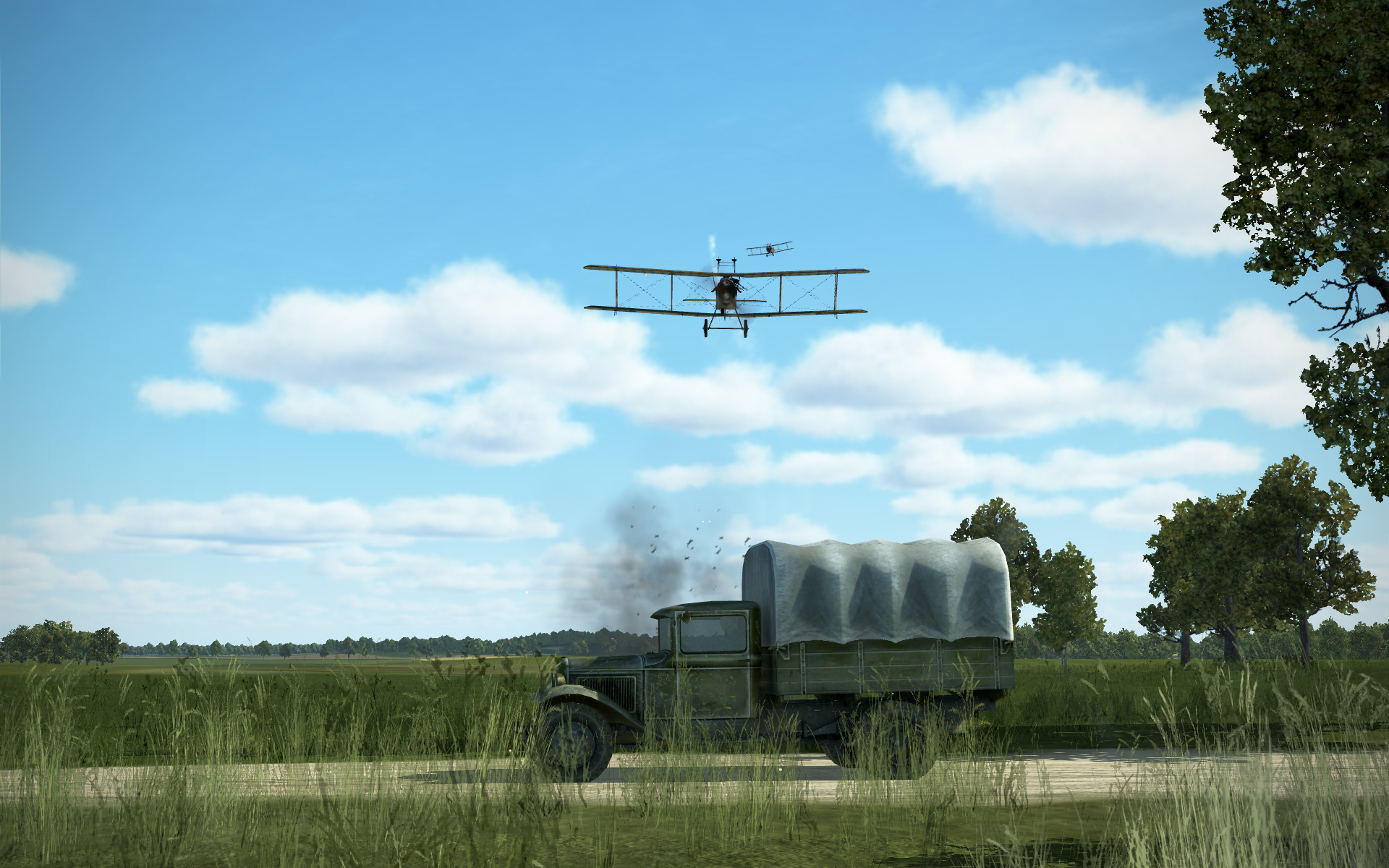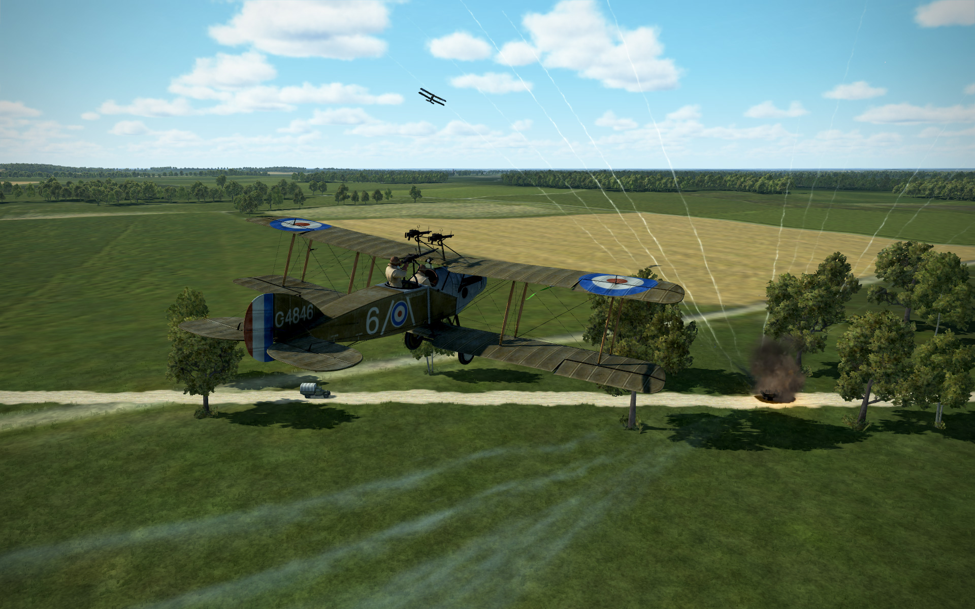 A follow up strike exploded the fuel tank of another truck thanks to a trio of machine guns mounted on the front and top of my F.2B.
