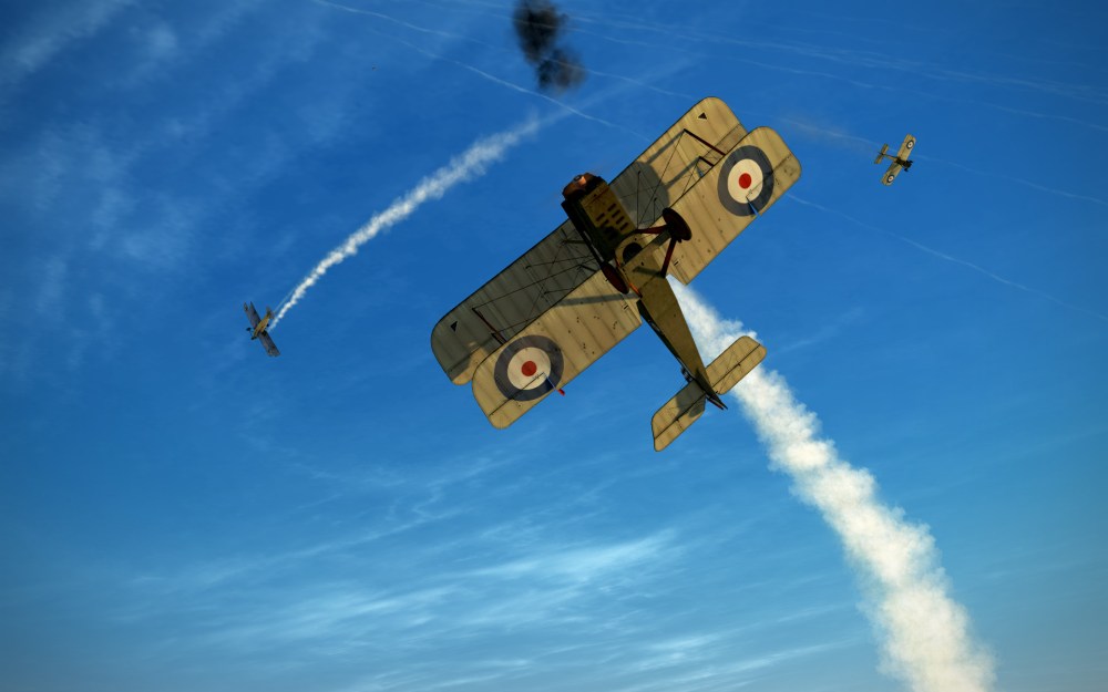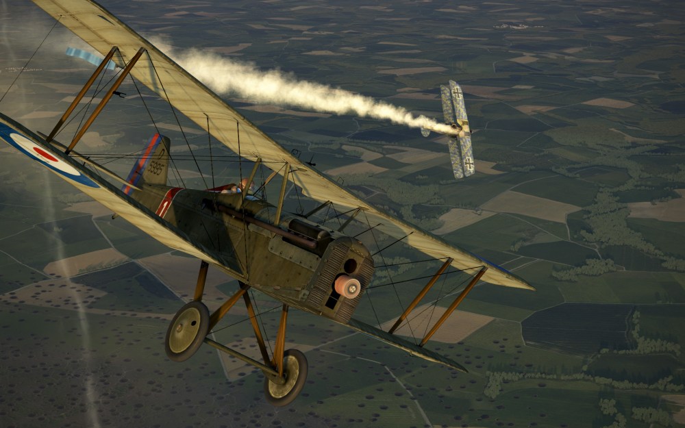 The most interesting part is that I’m about 90% sure that the Halberstadt CL.II was flown with a human gunner which means that four people were playing this multiplayer scenario in three aircraft. Engaging head-on, we ended up in a swirling dogfight with the Halberstadt trying to keep his gunner pointed at one of us and our two S.E.5’as trying to reposition to ensure that they could only easily engage one of us.