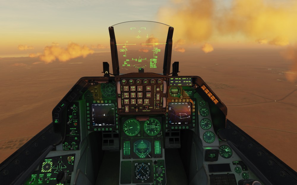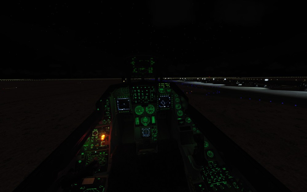 The thing I particularly notice here is that the cockpit isn’t quite as dark as it used to be. There’s more reflected or ambient light in the cockpit. The displays also shine a bit more but at the same time they remain readable and so the effect seems to add only a very slight amount of washing out with the reflected colour coming from the rest of the environment. It’s very convincing.