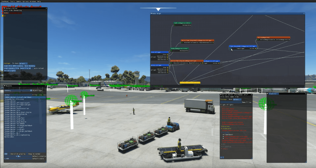 These are generated and interactive and so too are the parked aircraft which are actually just aircraft that can arrive, park, depart, and otherwise interact with the ATC and the rest of the world. That also helps make the airports feel alive.