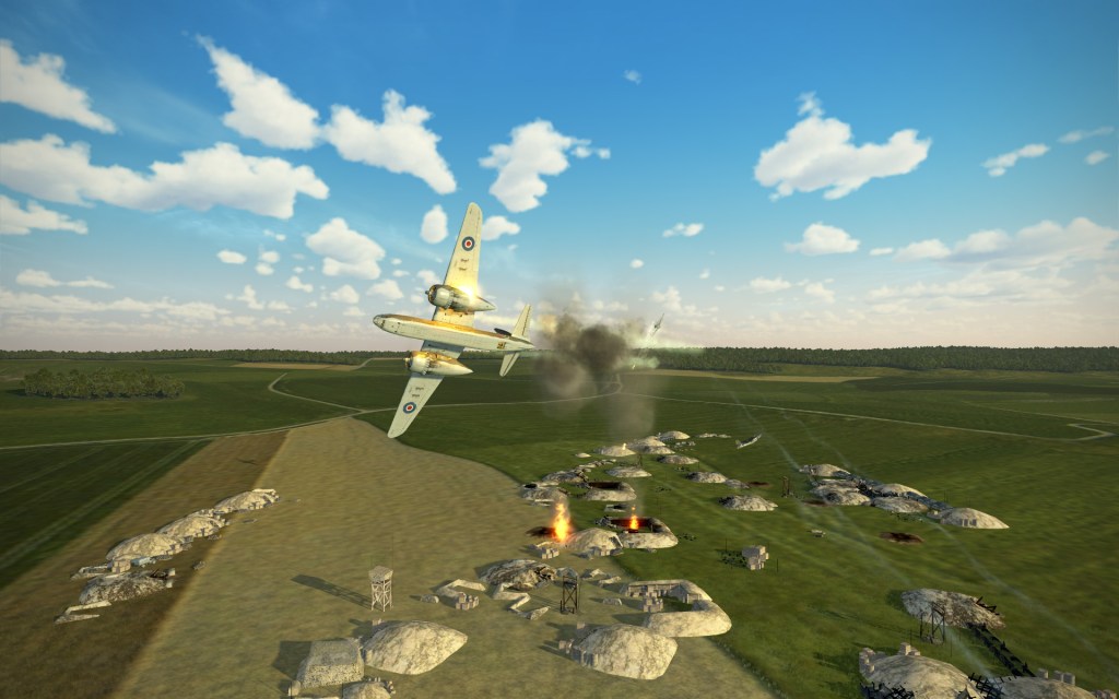 Two of us pressed into the target zone, bombs were dropped but only to minimal effect. The aim on the defending fighters was not to minimal effect, however, and my A-20 soon tumbled into the ground. Lessons learned – avoid enemy hot zones or go in with more fighter cover.