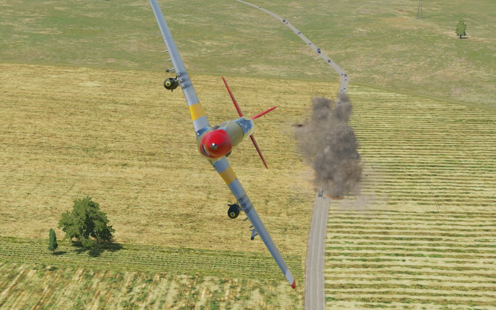 The 500lb bombs and HVAR rockets definitely work well. In the provided ground attack mission (Caucasus map where you target modern BTR’s) I was able to take out three BTR’s with the rocket attack and another two with the bombs. Not so bad!