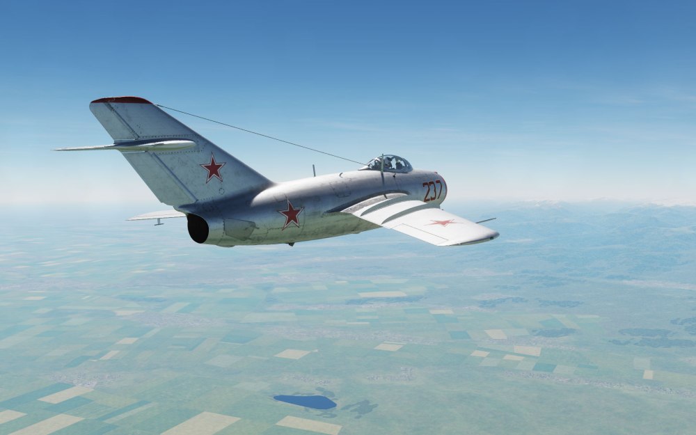 Although superficially similar looking, I found the MiG-15bis to be very much its own aircraft versus the F-86. My familiarity with the MiG-19 made flying the MiG-15 fairly easy to do with many of the same concepts in place in this jet as well. The MiG-15 is also very interesting because unlike the F-86, it tends to behave itself much more readily at near Mach 1.0 airspeeds although it certainly stiffens up on the controls.