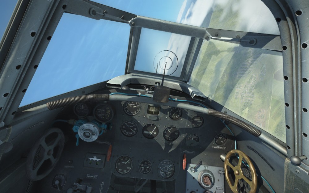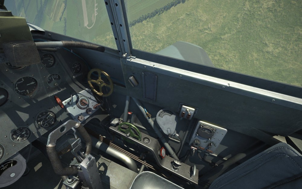 The cockpit is beautifully detailed with lots of texture detailing. The knobs and dials reflect the sky and sun thanks to the new lighting upgrade but here it looks better than any of the other Yak’s we’ve seen. Although IL-2 still uses lower resolution textures compared to other sims at this point, it seems to me that the IL-2 art team has wrung out every last pixel here to make for a great looking cockpit.