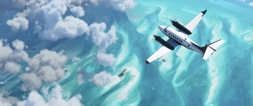 Then the trailer jumps into some more action packed bits with what looks to me like the XCub – I’m not completely sure. Ignoring the aircraft for a moment we get to appreciate the impressive water and island detailing and the clouds as well. Amazing!