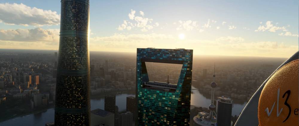 From the cockpit of the VL-3 we see some impressive detailing on buildings located in Shanghai. I love how the individual rooms and windows seem to light up and have depth in this shot.