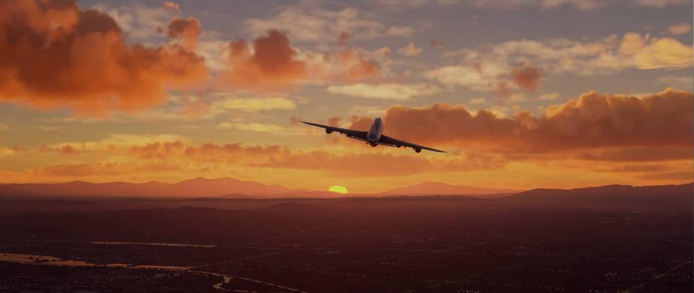 Finally, a 747-8 flying off into the sunset. It’s a fitting way to end a trailer and a beautiful shot.