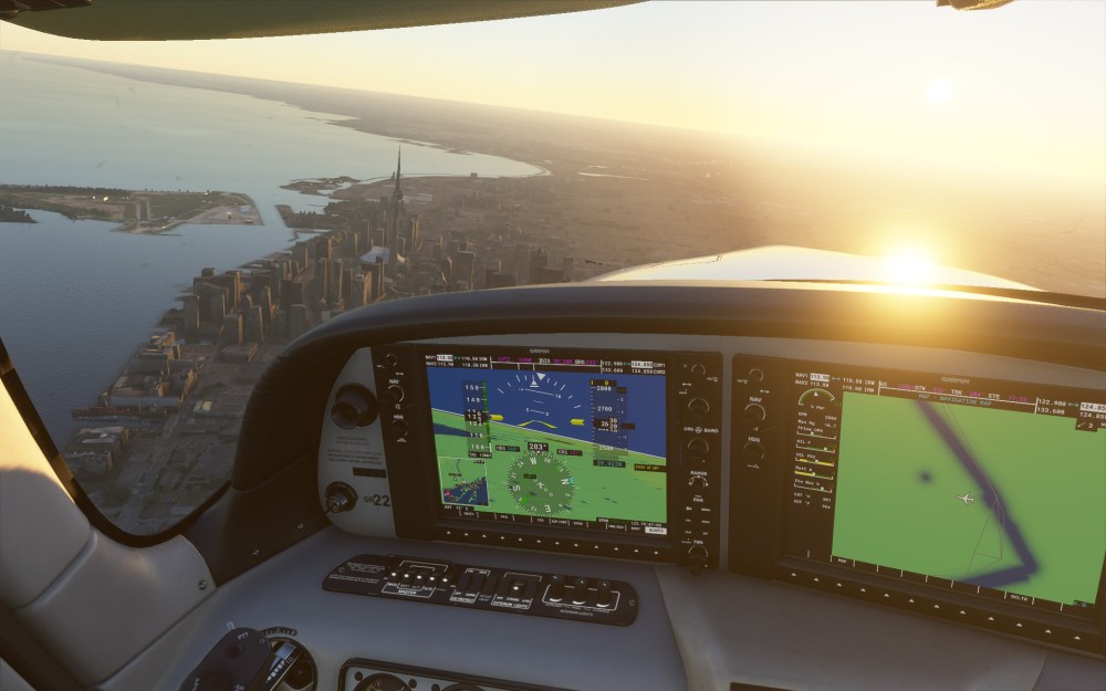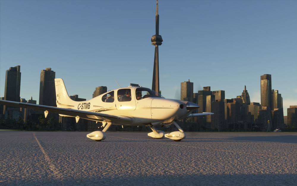 The results are, very good but not particularly beautiful in places. The airport itself, in handcrafted glory, is excellent with plenty of detail. The ramps look great, the runway signage is all there, and generally speaking it looks accurate. Nearby Toronto waterfront is less accurate with photogrammetry in place but some buildings including the iconic CN Tower looking sub par. Don’t get me wrong, it’s all accurately placed and the buildings do look like themselves but this is an area where the sim doesn’t quite get it right.
