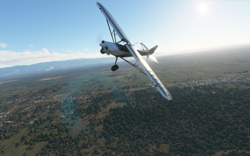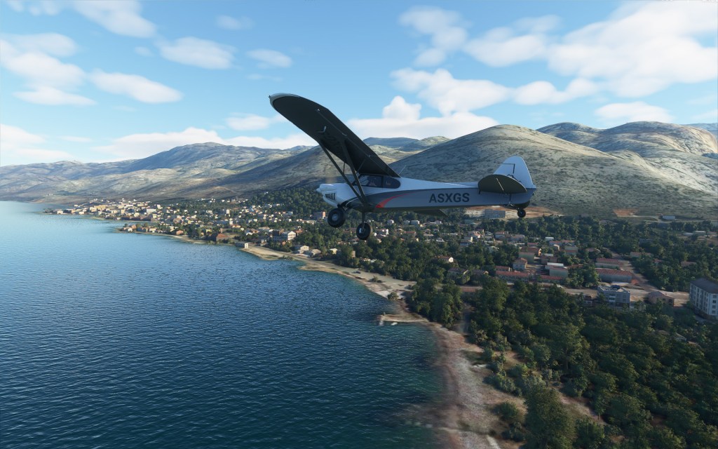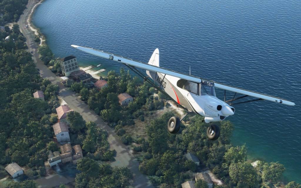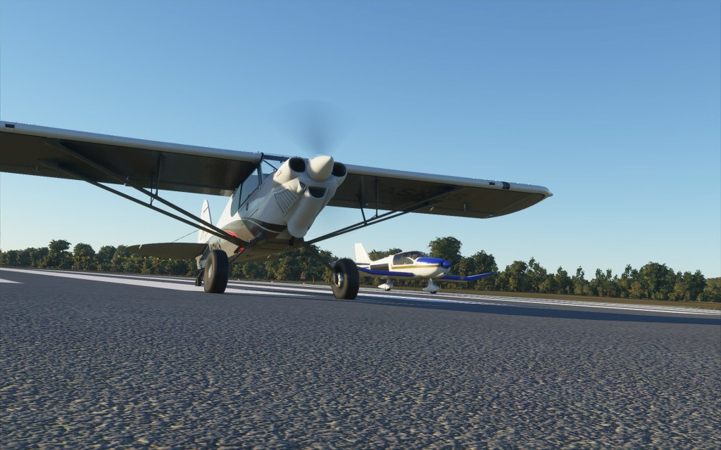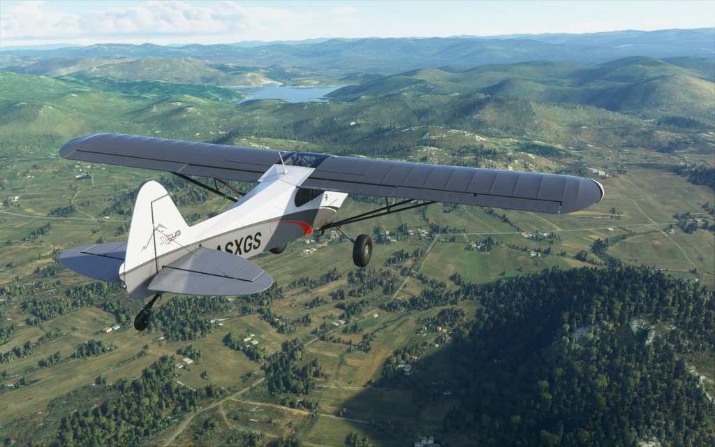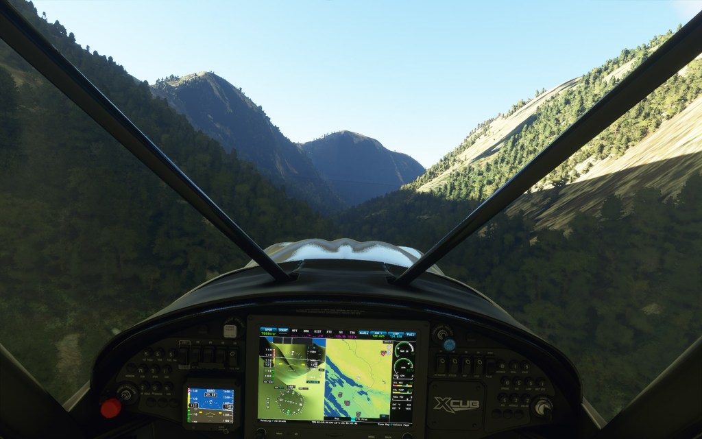 The aircraft I was flying is the X-Cub. A Piper Cub modification that I can tell I already really enjoy flying. Smooth and easy handling with good power overall and terrific stall character means you can get it in on a short grass strip or a flat piece of ground without too much trouble. The glass cockpit injects a modern touch into the aircraft which I quite like (and some of you may not).