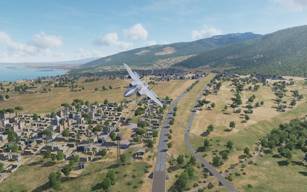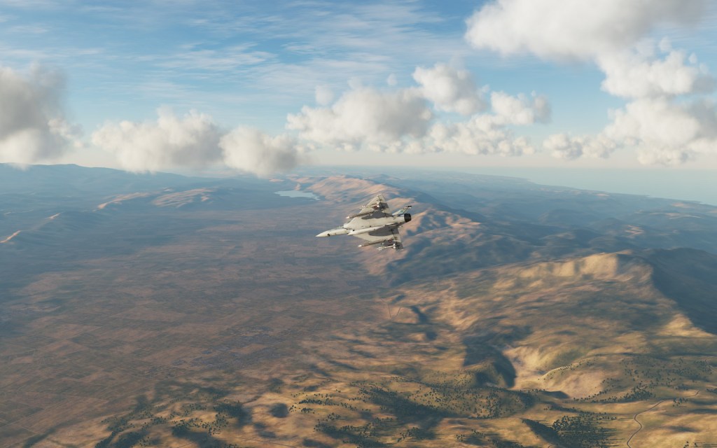 Flying up to 25,000 feet the details of the map fall away and it becomes a little more bland though certainly not bad looking. This isn’t entirely the fault of the map creators as its just something that happens to DCS World maps. The satellite imagery overlay ends up not being quite as impressive up high as it does down low – with the one exception. It does capture the variety of scenery in the region exceptionally well.