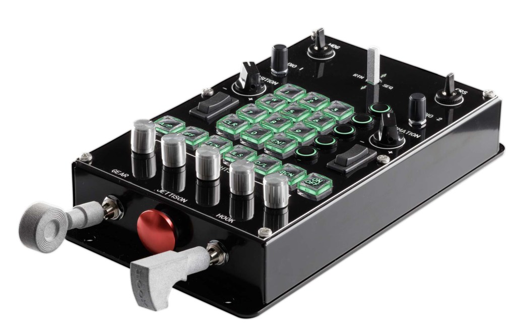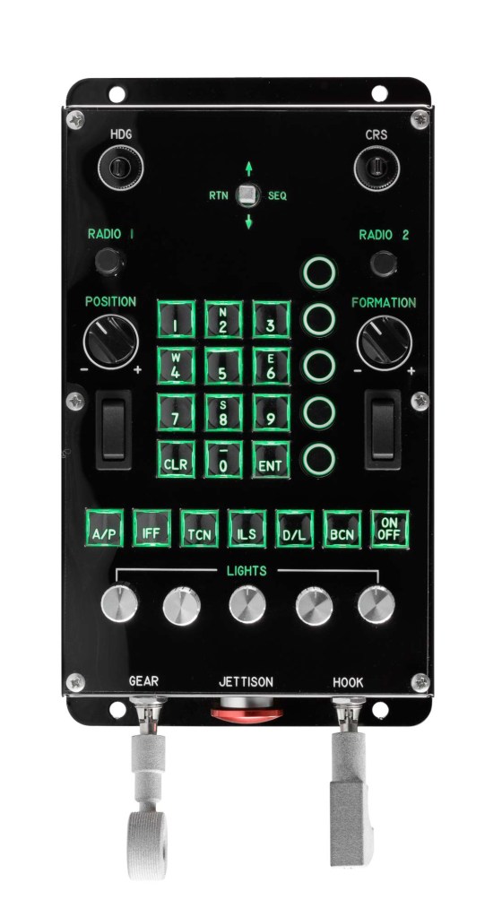 Looking at the design it’s very clear that this was based on the UFC from the F/A-18C. The formation and exterior lighting knobs, the number pad, jettison, hook and gear controls appear to be geared towards the Hornet. But then we also have the dobber control from the F-16C and a couple more switches here and there that aren’t specific to the Hornet. It looks like you could easily bind the same controls to that to virtually any modern aircraft that has a number keypad, gear, lights and other controls.
