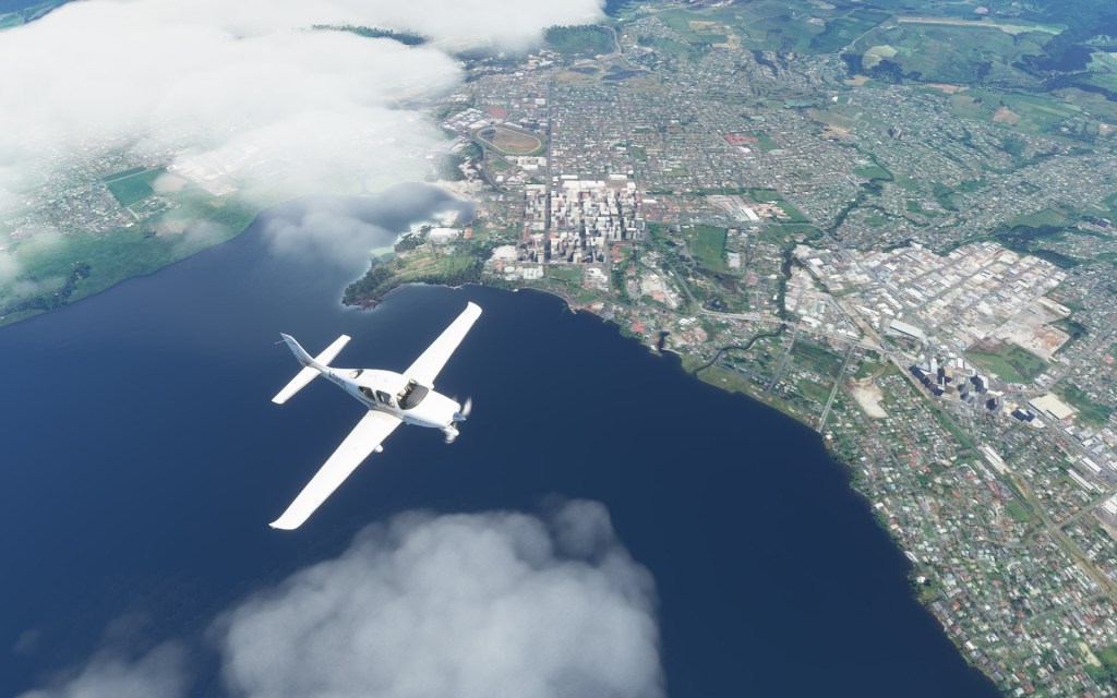 Emerging from the more rugged areas we spotted more lakes and flat land as we flew over the town of Rotoura and near the area where Hobbiton was created for Lord of the Rings (more LOTR references here folks!). Finally, with the City of Hamilton, New Zealand in sight, we set about landing our aircraft. Around us was the sparking lakes and low fog that we had saw on the other side of the island.