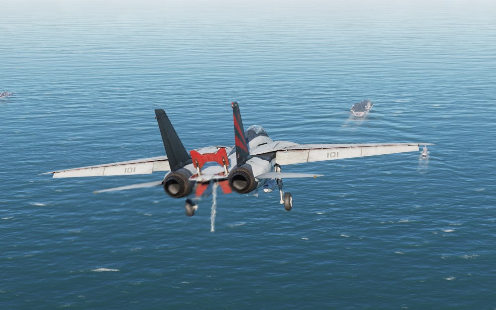 Carrier landings is where I next felt the most difference. Although my first landings were a success, I did have a couple of rough landings and a couple of bolters as I adjusted to the difference in both total available thrust and the speed at which thrust is added and removed. It requires a new approach and an awareness of which version you’re flying.