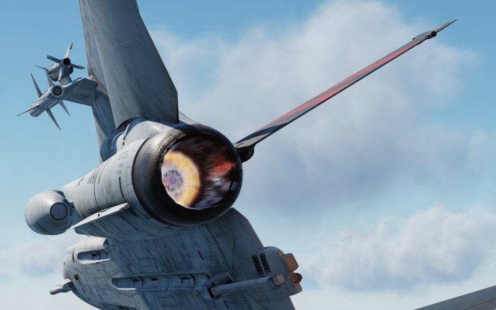 Those compressor stalls that I was talking about earlier on the real jet? Modeled. Take the aircraft into too high an angle of attack, adjust the throttle too quickly, or fly it up too high and run it at full afterburner and you’ll increase your chances of stalling out the compressor. Other aspects of the engines character is modeled too. The long time that it takes for the engine to progress through the various afterburner stages is also part of the experience and you’ll notice that thrust comes on slowly and in bursts. You’ll hear it too! The TF-30 also kicks in asymmetrically even in ideal conditions so you’ll see the left engine light and then the right. Very cool from a simulation perspective.
