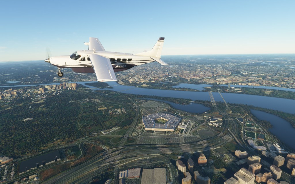 Flying into Washington DC is an interesting experience. This is one of the most tightly controlled airspaces in the world and also the home of a great many landmarks. Quite unlike the tightly controlled airspace of the real world, Washington DC in Flight Simulator is a sight seers haven. From the Capitol Building, Washington Monument and Lincoln Memorial to the White House and the Pentagon, all of these major landmarks are looking great in Flight Simulator and there were aircraft flying everywhere. Someone even landed an Icon A5 near the Lincoln Memorial. Some may not be enthralled with the kind of chaos present but I think it was great to see so many exploring and enjoying the new scenery.