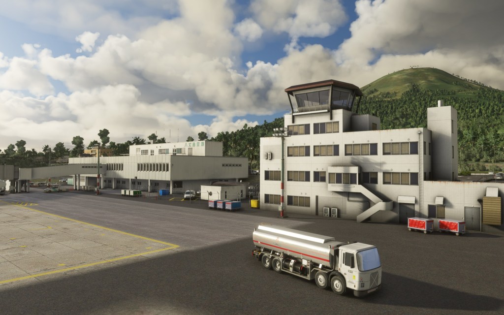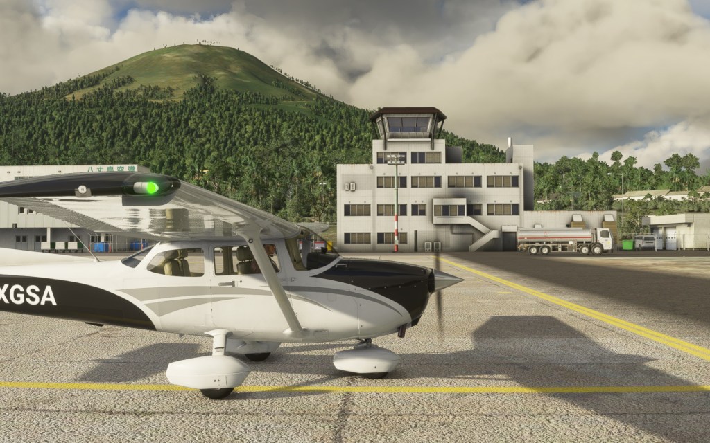 I wanted to feature one more airport that wasn’t part of my tour into the flight and so I decided that I’d do a short flight around Hachijojima (RJTH). This is a vacation destination with inns, camping and hotsprings and the airport has been given the high end treatment by Asobo. No surprise here, it looks great! It’s also just big enough to support airliners and small enough that GA aircraft can tour the island and neighboring Hachijokojima comfortably.