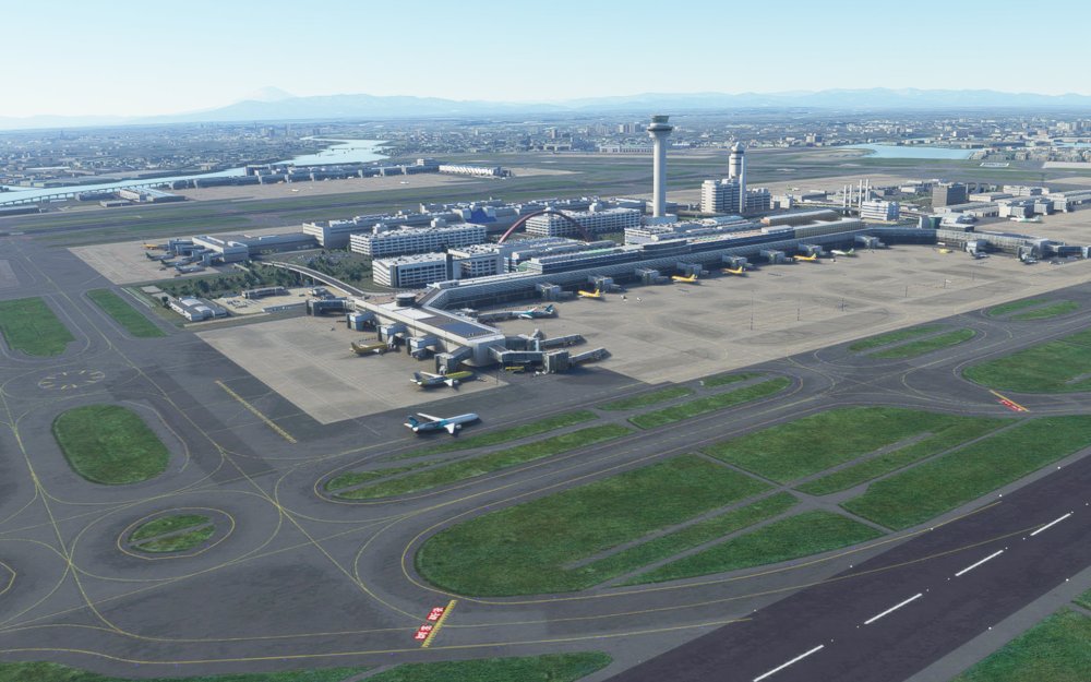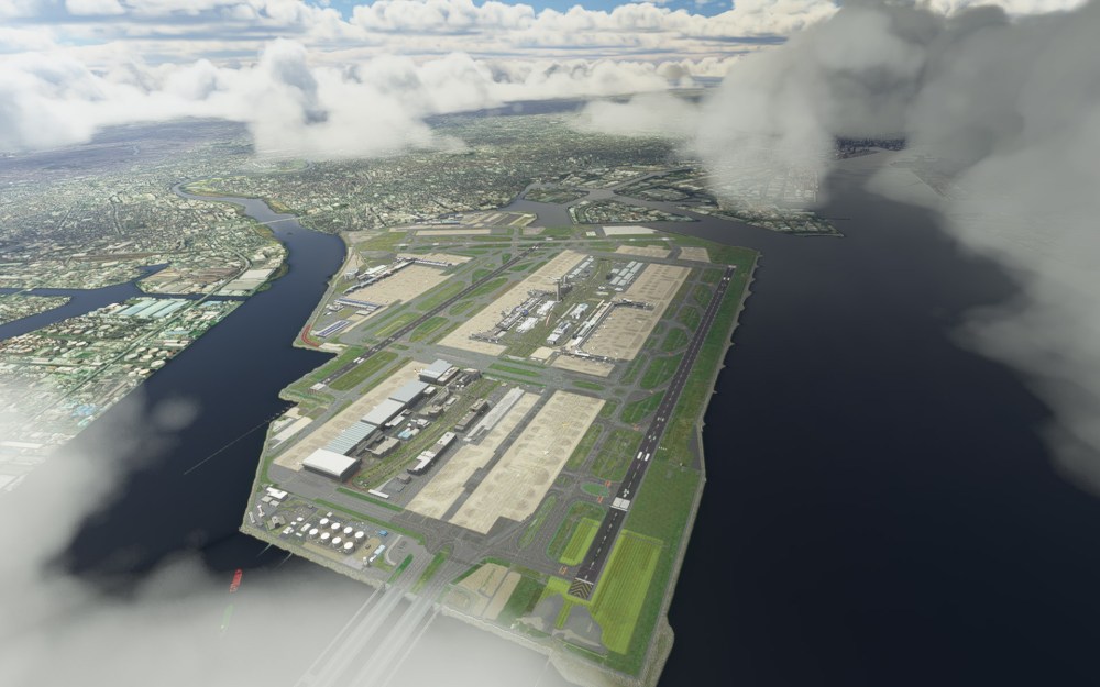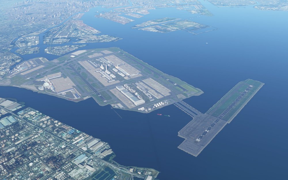 Then it was on to another high quality airport with the Hadena Tokyo International airport (RJTT) as my destination. Located on reclaimed land in Tokyo bay, it’s a fun airport to fly in and out of with quite a bit of detail all around and several runways. There’s typically a lot of player and AI traffic in the area too.