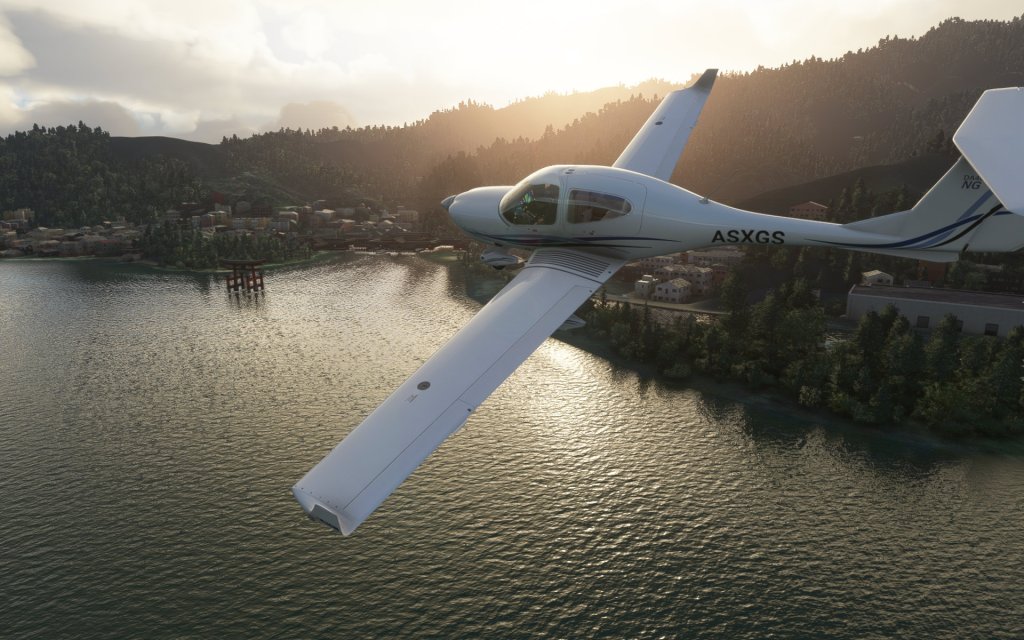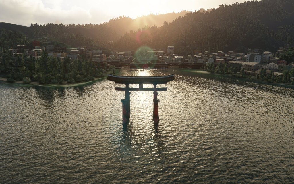 Along the way I wanted to stop off and do a bit of sightseeing on at least one of the many locations that Asobo has added as a point of interest. The Itsukushima Floating Torii Gate is one of the highlights that they have added and its a unique addition to the sim – many of the other points of interest are notable bridges for example. So I hopped into a Diamond DA40NG and flew from Iwakuni airport (RJOI) for a quick flight around the area and back again.