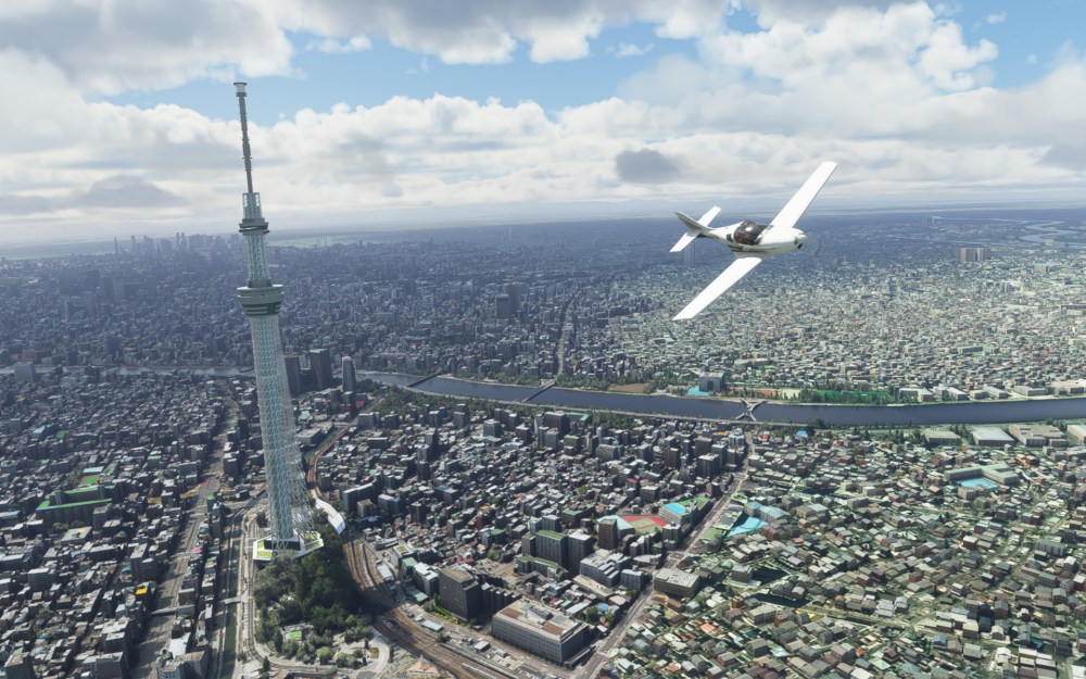 Another short flight I made was to do a little sight seeing over Tokyo. It’s something I did when MSFS came out and I wanted to recreate that flight so I set the clock back to the summer (brighter sunlight is just one consequence of that) and flew over some of the same areas. To my delight, Tokyo looks even better than it did before and there’s lots of bridges, buildings and other key landmarks represented.