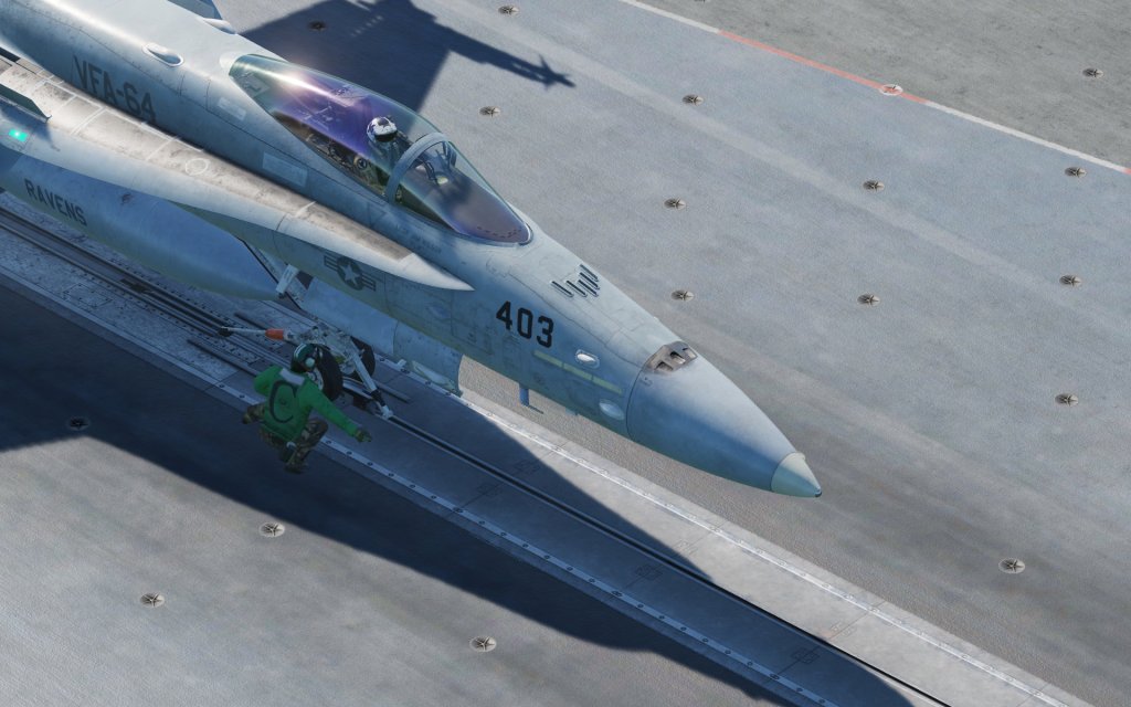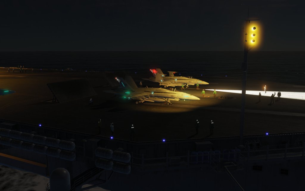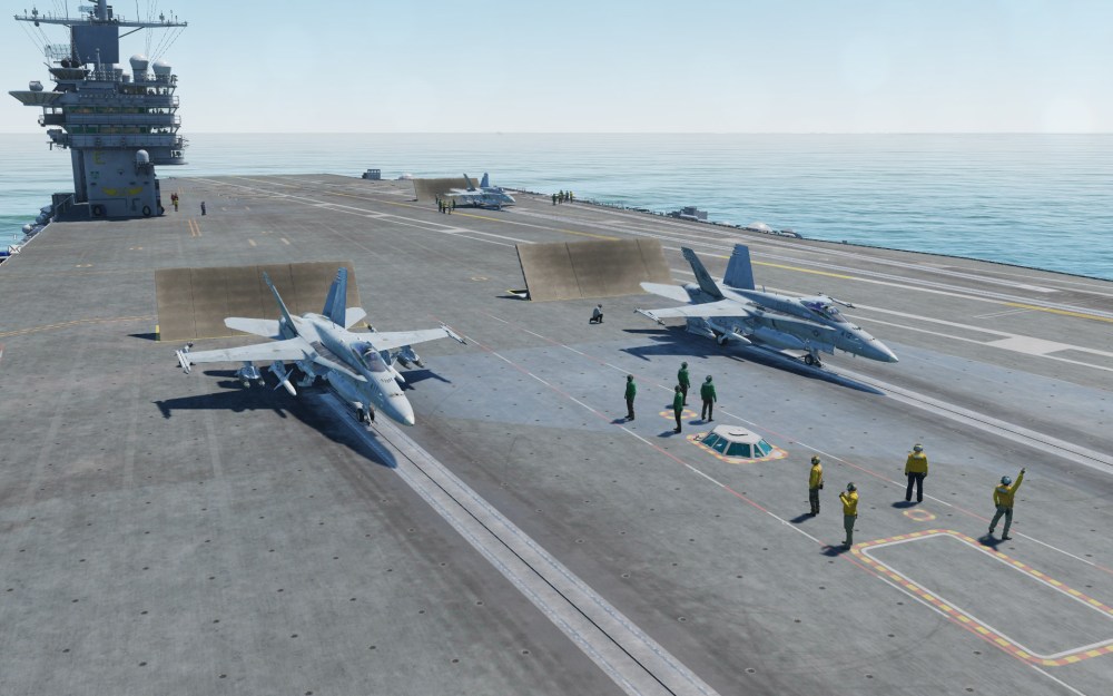 Although you don’t explicitly need DCS: Supercarrier, the experience I’ve had with it both online and offline has been intensely satisfying. Flying operations from the included carriers has been a lot of fun and doing it from the highest detail supercarrier experience I’ve seen in a commercial flight sim is well worth the experience. What it offers to pilots of the Hornet is a detailed series of procedures for carrier takeoff and landing that include animated deck crew that are almost worth the price of admission on their own. Having the crew guide you on to the catapult using realistic hand signals that precisely match their real world counterparts was so worth it.