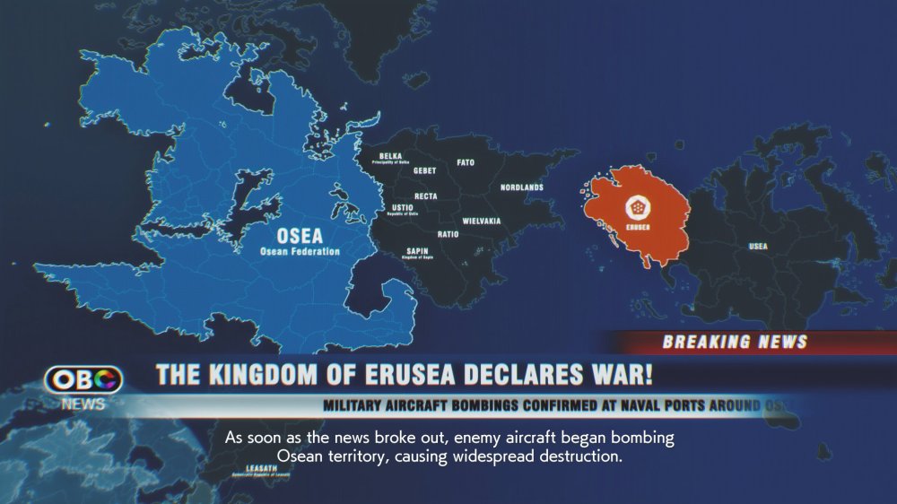 In the basic plot of Ace Combat 7, two fictional nations of Osea and Erusea go to war when Erusea launches a surprise attack. At the centre of the war are a space elevator and a long history of conflict between the two nations. Self-learning drones, the massive and almost indestructible Arsenal Bird drone carrier, and splinter rebel groups eventually become the primary antagonists as the conflict goes on.