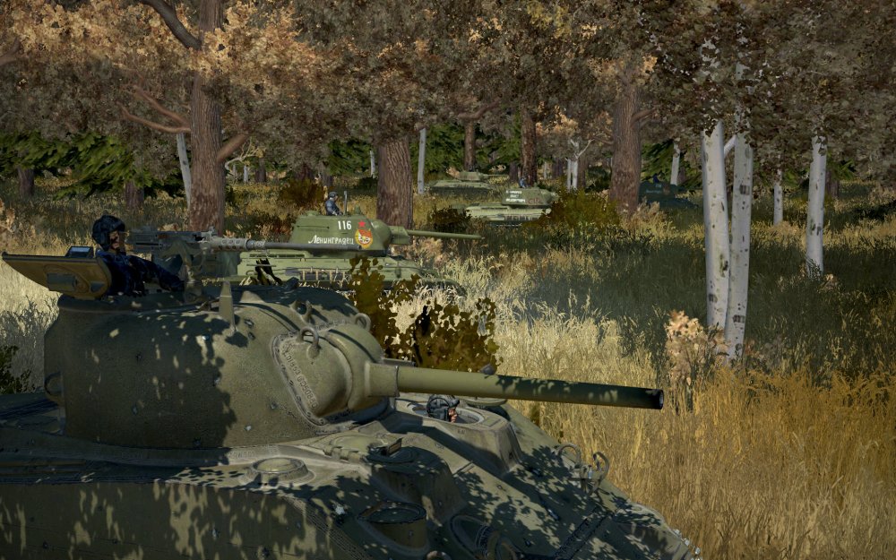 So with that in mind, three of us loaded up into 3 M4A2 Sherman tanks and selected the southern sector of the server’s new Moscow map scenario. We pushed forward out of our base and along a long road to the enemy objective.