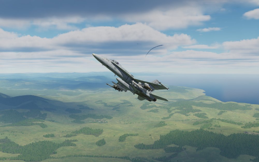 Our first flight last night saw us join onto the Georgia at War server with our trio of Hornet’s flying from the USS George Washington. We decided to strike a target area just in from the coast comprised of short range SAM’s and some vehicles.