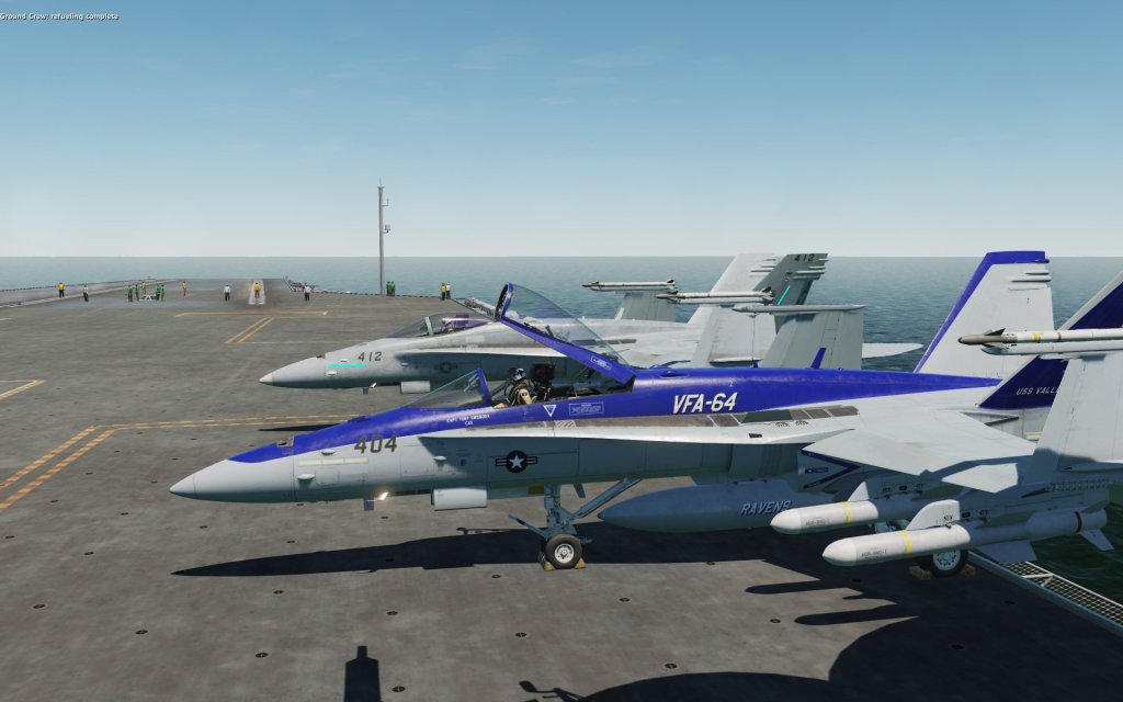 As I started up on the carrier deck, another Hornet had the same idea and thanks to SRS we were able to link up. He was using one of the Raven One skins so I joined in on the fun.