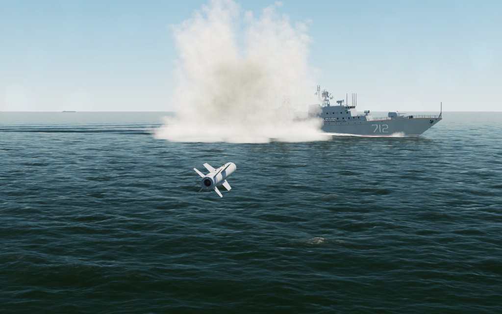 For this mission, we brought the full load of AGM-84D Harpoon missiles. These anti-ship missiles are powerful but somewhat less capable than the RB-04’s that I’m used to on the AJS-37 Viggen with much less speed and therefore less ability to evade defenses. We didn’t know if the strike would even work.