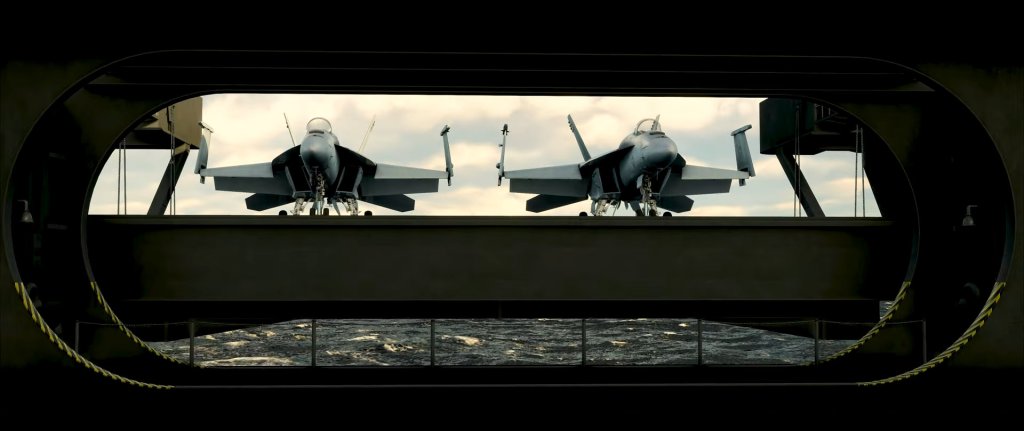 Then as we hear what we think are the last notes of the trailer song, there is another beat and the familiar chime from the Top Gun Maverick trailer music and the whole mood of the trailer takes a turn as we are shown a Nimitz class carrier, an F/A-18E Super Hornet on both the inside and out and even the mysterious spy-plane that appears in the movie trailer. Yep, that makes an appearance here too!