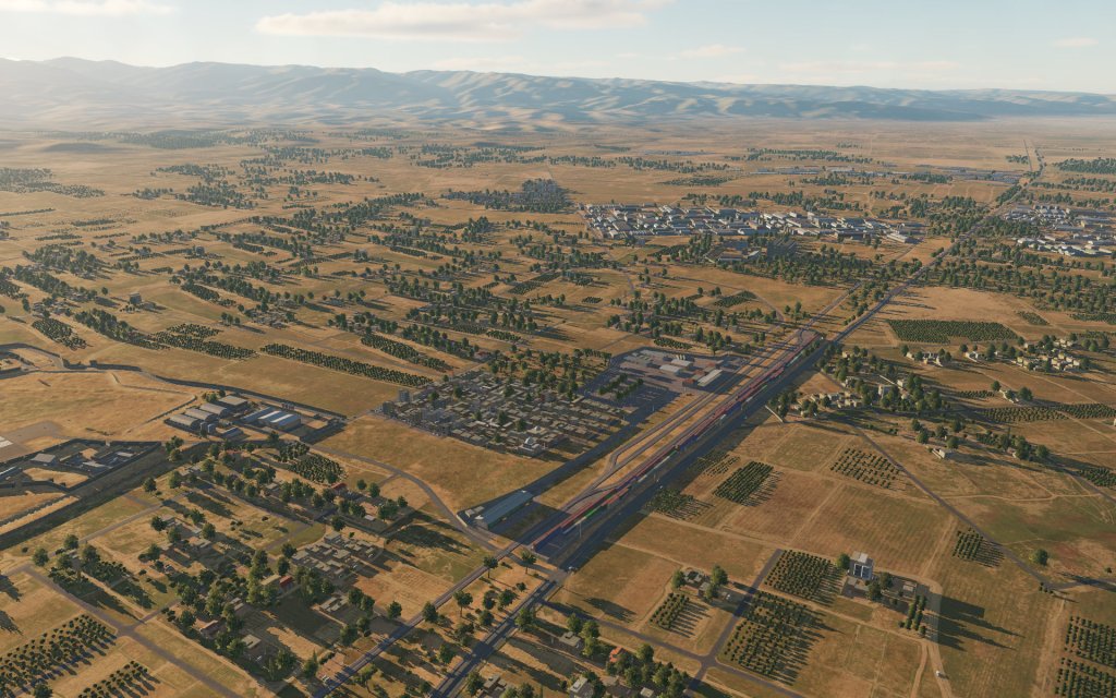 The map covers a wide variety of climate zones that includes the more arid regions in the east as well as the more humid regions near the western coast. It also has a diverse array of locations and points of interest including dense urban areas, rural areas with orchards and farmers fields, as well as industrial port facilities, railyards, warehouses and business parks. In short, it has everything!