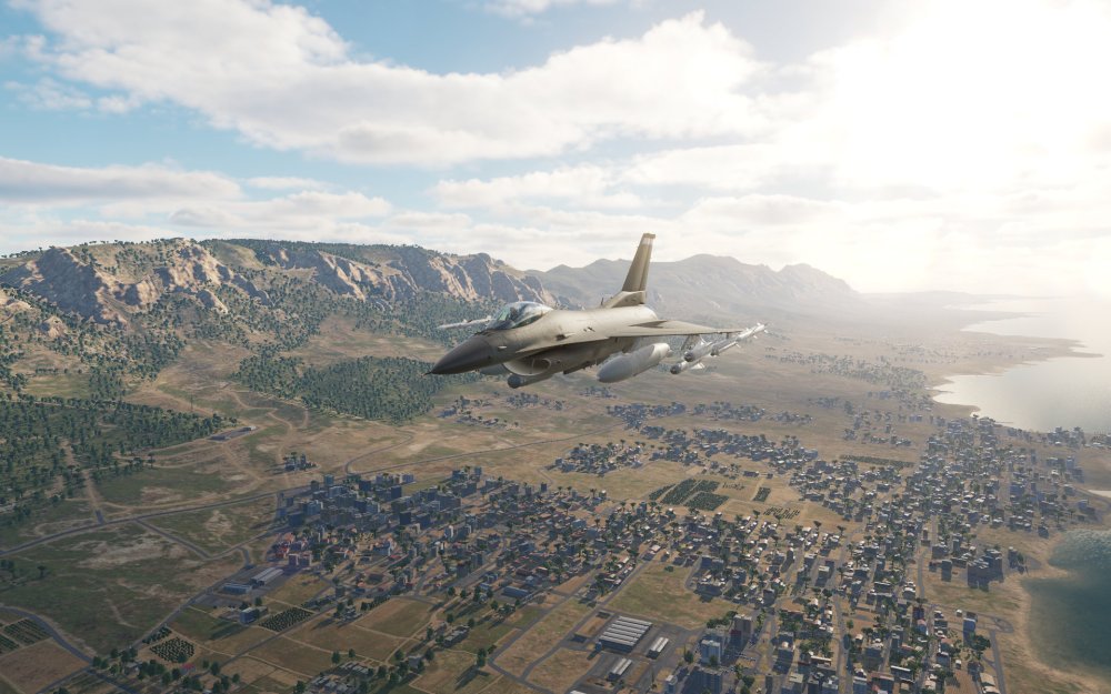 The range of experiences that you can have with this map thanks to its phenomenal low altitude scenery and high-altitude scenic views work extremely well no matter if you’re a close air support fan, a helicopter fan, or if you like blasting along at Mach 1.5 at 35,000 feet. This map looks great in all of these scenarios. This map also has a great range of visuals with desert, coastal regions, urban areas, and everything in between and it distinguishes itself easily from the other maps available.