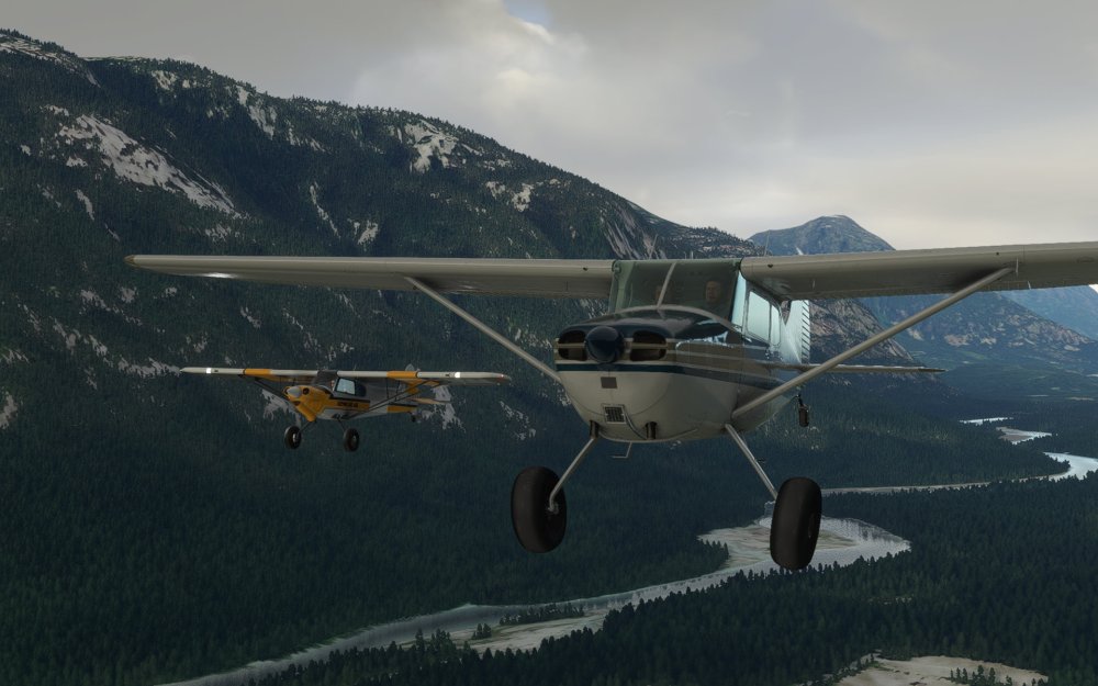 Last night I flew with some friends from CYBD Bella Coola Airport in Microsoft Flight Simulator using real time weather and time to get an experience with the new Cessna 170 from Carenado. The Cessna 170 is an older aircraft from the 1950’s that Carenado has ensured comes with a bushplane option. So what did I do? We went bushplane flying!