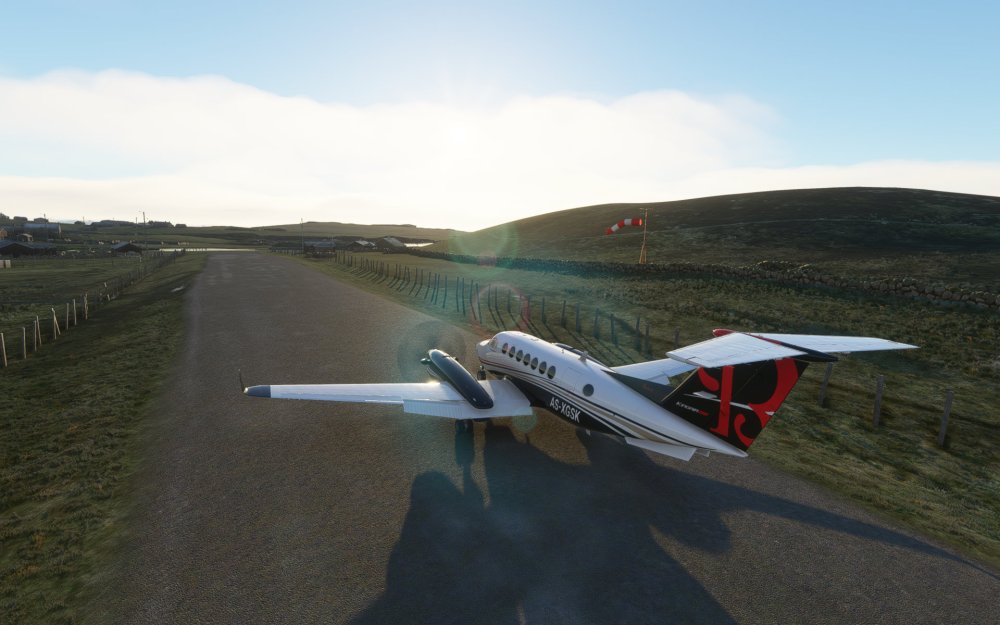 Lining up on the small field at Out Skerries was very interesting as the short runway is flanked by wooden fences on either side. Fortunately I was able to get the aircraft down at the right spot, hit the reversers and hold hard on the brakes. The King Air shuddered to a stop with just enough room to spare.