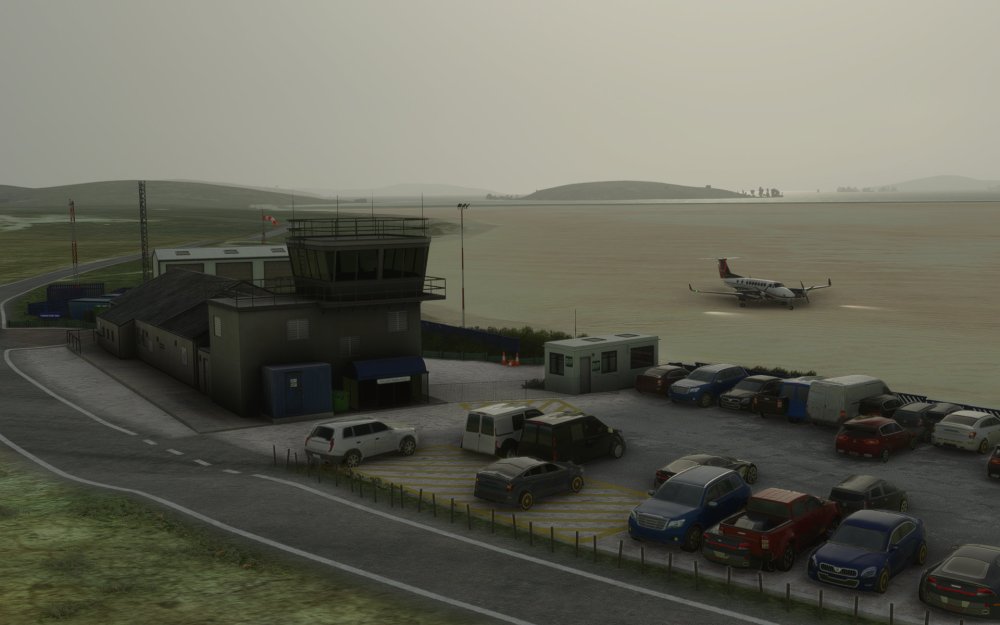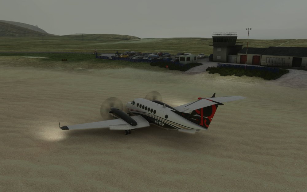Located on the northern tip of the island of Barra, the airport here is located in a wide shallow bay of Traigh Mhòr. It may be the only airport in the world that operates scheduled flights on a tidal beach runway. I had to see this for myself, especially as World Update 3 made this into a more detailed experience. It was worth it as the runway was short and my landing approach required a very low speed and an immediate effort to bring the aircraft to a stop.