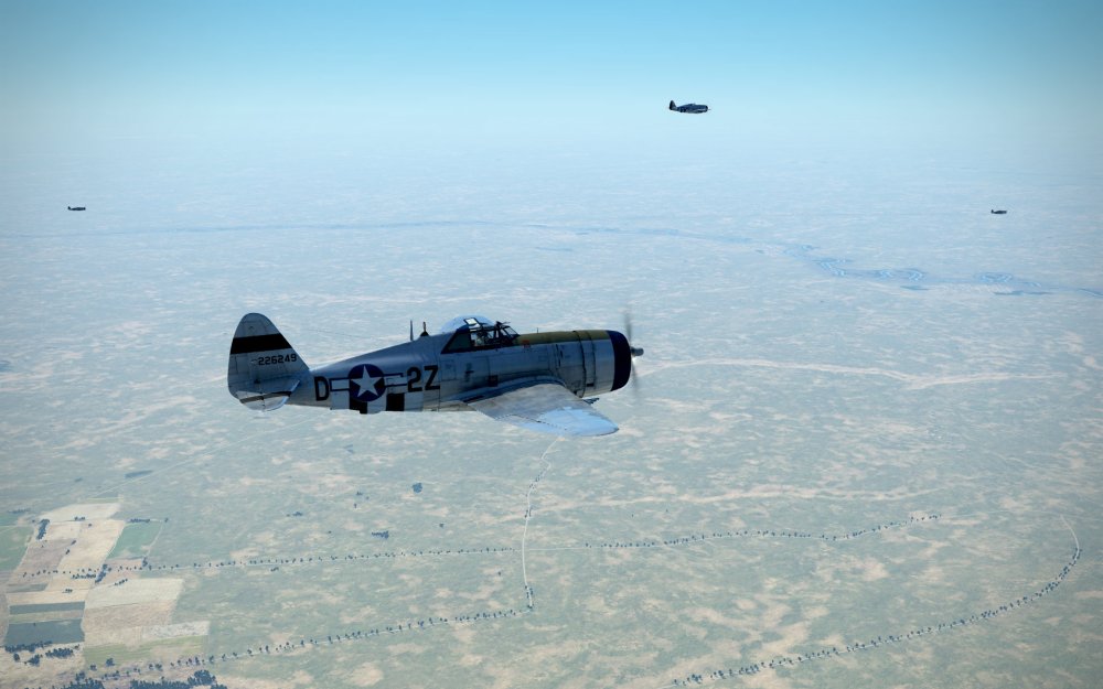 Although I feel like it doesn’t get enough credit, flown well in a formation, the P-47 becomes a powerful and dangerous fighter. We decided to turn our successful strike into a fighter sweep as we climbed to 10,000 feet and away from the target area and heading back to the north along the frontlines.