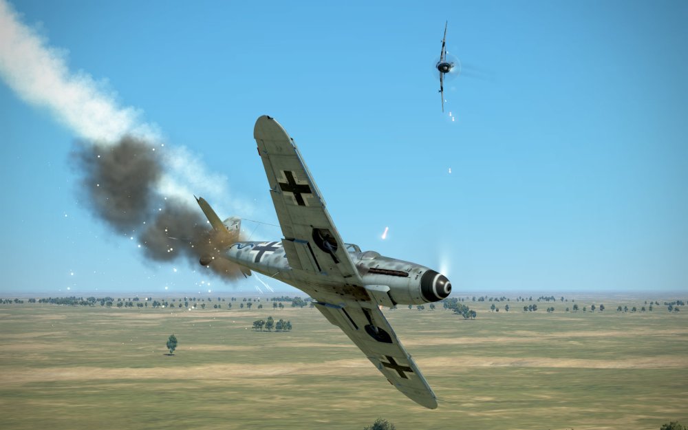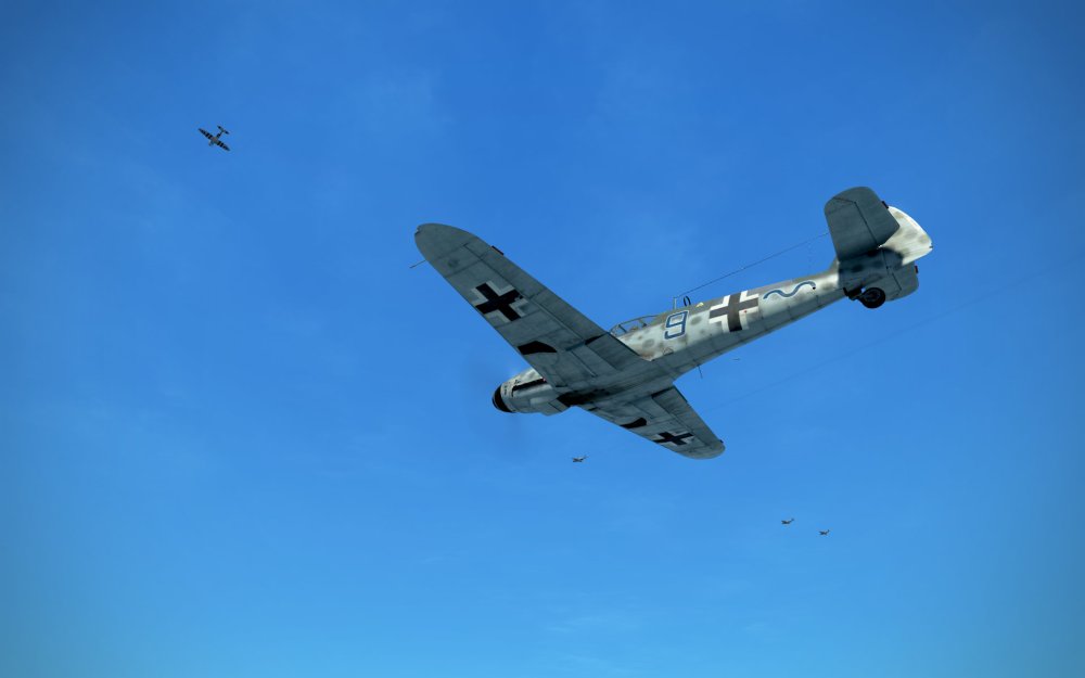 Another 109 saw the action and tried to engage but I ended up being at his long six o’clock firing a short but accurate burst that did some damage almost immediately. I ran out of speed trying to climb with the 109 but another in our flight caught him and filled him full of .50cals. One more 109 down.