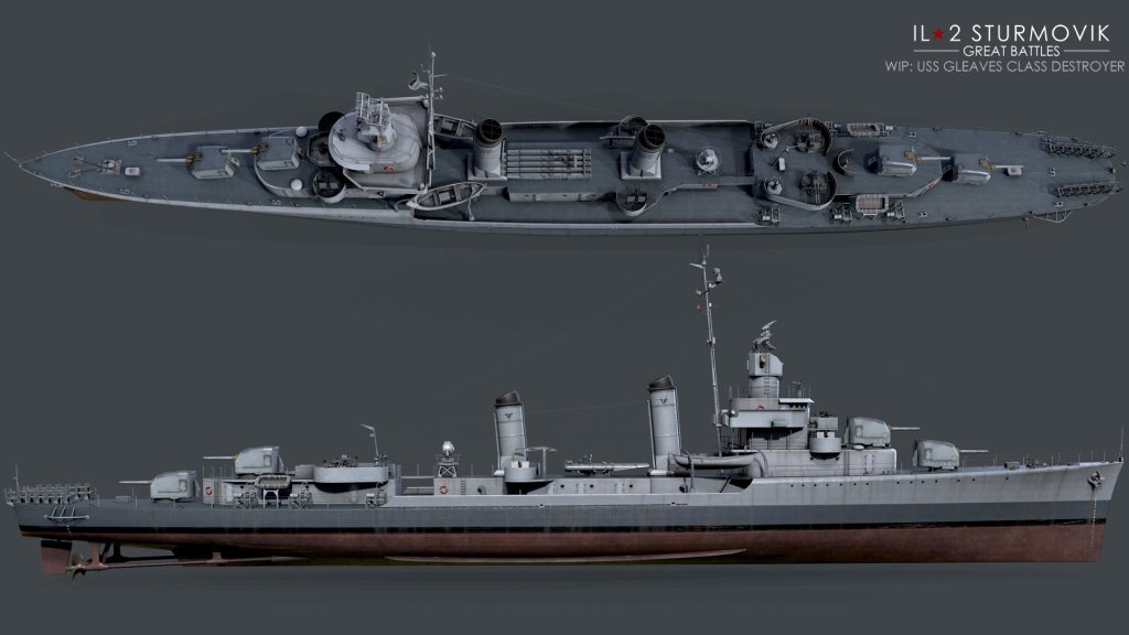 Something else on display in this short update is the USS Gleaves and the Gleaves-class of destroyer. Just two weeks ago we saw the untextured version. Now, things have jumped forward and it appears fully detailed and textured. And it looks really good!