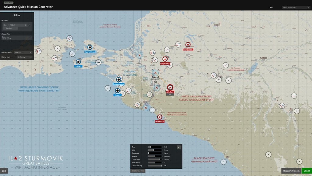 Several dozen screenshots have been released showcasing the feature. AQM will interlink with the regular QMB offering a new kind of icon on the map that will unlock the ability to select aircraft, type of mission and weather conditions to fly in going by the images. Jason reports that the feature will let you setup a mission in moments and be up and flying quickly. He also says that the team have focused on Moscow, Stalingrad, Kuban and Rhineland maps first and that they hope to add the other maps available in the series later too.