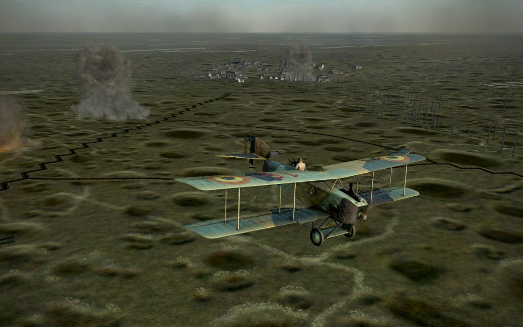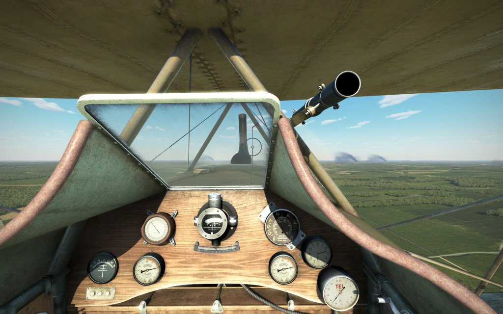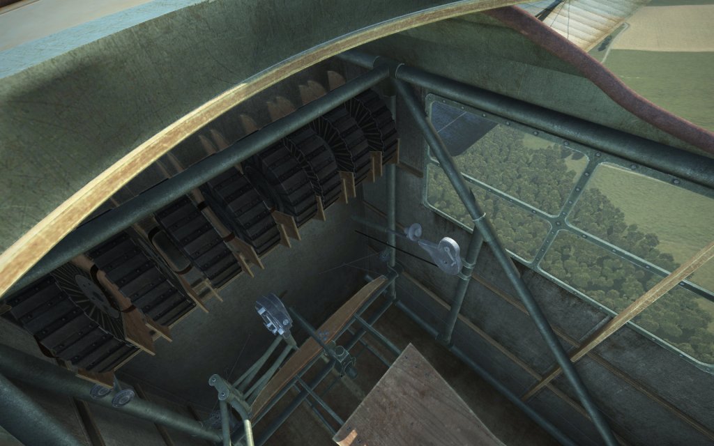 The Bréguet has stabilizer trim, a rarity among WWI era aircraft, and evidently a feature not added to the original version in Rise of Flight. Here it’s useful to ensure appropriate nose angle for easy almost hands off cruising.
