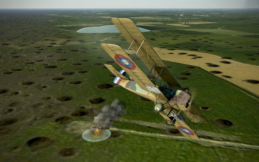 The Bréguet is also agile enough to fly as an attack aircraft doing lower altitude bombing attacks and strafing with the type’s forward firing Vickers 7.69mm machine gun. The optional Lewis gun overwing attachment can boost the forward firepower in situations where that’s needed. Meanwhile, the optional Le-Chretien and Aldis gunsights I found to be useless as I couldn’t move my head out far enough to aim with them. The standard iron sight is also hard to use as its positioned off to the right side while the single machine gun is positioned on the left side of the fuselage. It’s not easy to aim as a result and it is one of the few downsides of this aircraft.